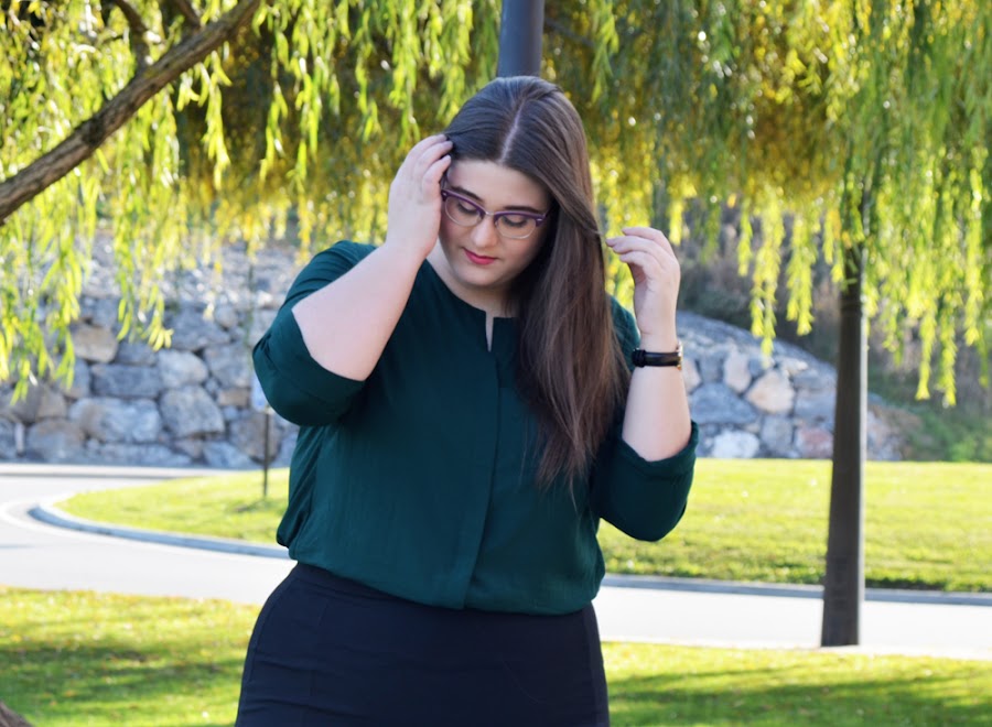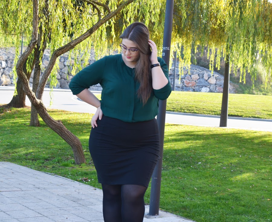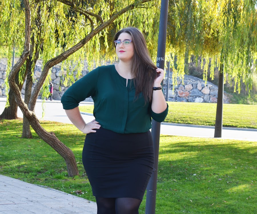 En esta ocasión, decidí combinarlo con un color que vemos mucho ahora durante el otoño/invierno, como es el verde botella. Me encanta este color, siento que pese a ser un tono oscuro, da una vibra muy buena a cualquier outfit. Esta blusa es de la tienda online Taille-plus, que sabéis de sobra que me encanta y adoro como funciona. No solo la atención al cliente siempre es buenísima, sino que si tienes que cambiar una prenda, te ponen todas las facilidades del mundo, y ademas la calidad de las prendas es suprema.