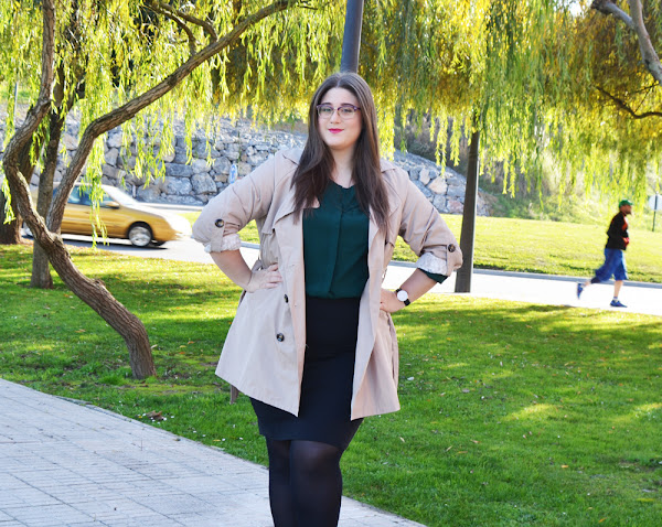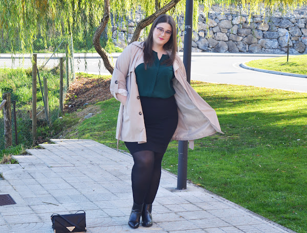 Y ahora os traigo un outfit medio formal. Al que suelo recurrir bastante últimamente. Cambiando un poco la blusa, los botines o incluso la gabardina. Había pedido también hace poco una gabardina en rosa potente, apagado, ¡pero no me llega! Y estoy ansiosa.
