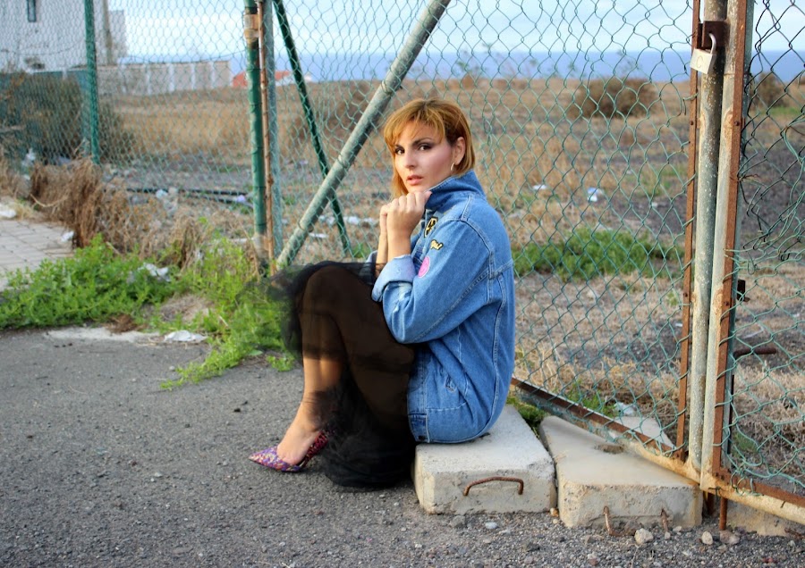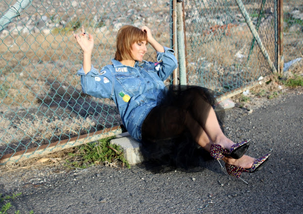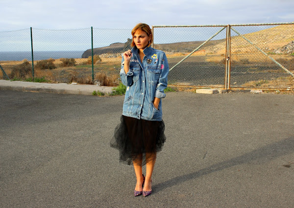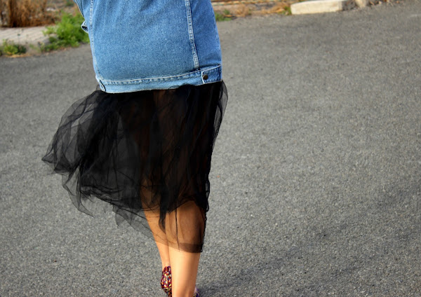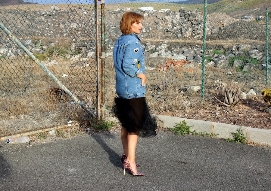 Una cazadora vaquera, una falda de tul, un par de tacones y ya tienes un look perfecto para ir a tomar algo con las amigas.