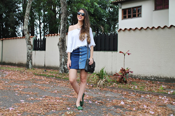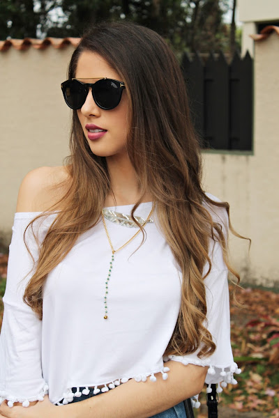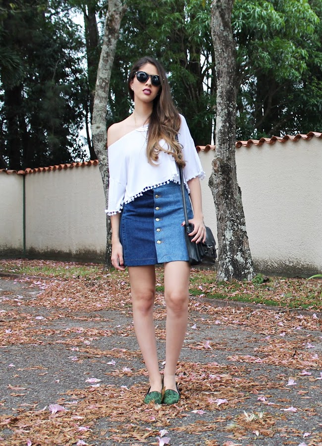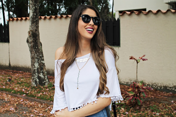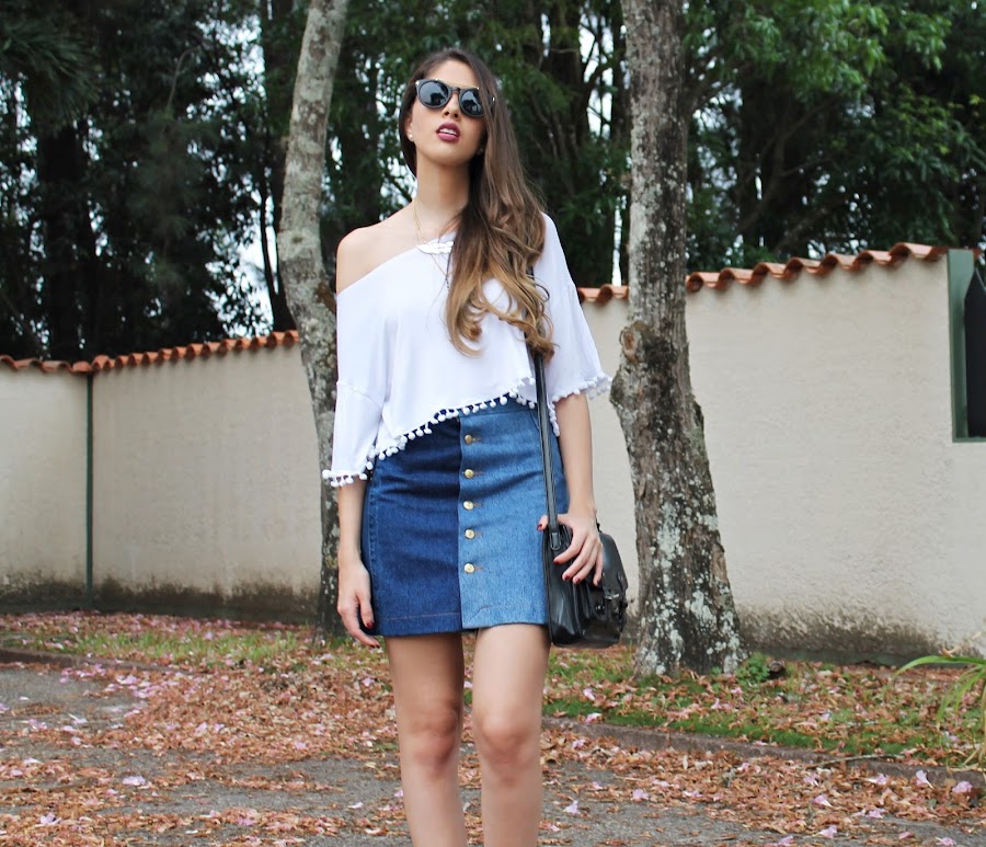 Las faldas con botones son un must de la temporada, y me encanta cuando marcas de mi país se arriesgan a traer cosas de moda al alcance de todos los Venezolanos. Este es el caso de este look en el cual no estoy llevando 1 sino 3 tendencias que muchas de ustedes ven en pasarelas y calles alrededor del mundo, estas son: los pompones, hombros al descubierto y las faldas de botones.