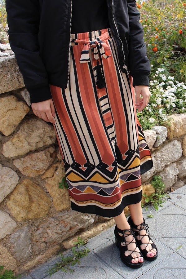 This outfit is a total look from H&M, the body, the skirt and shoes, and the jacket is from Stradivarius.I fall in love with the skirt when I saw it! ith black it mix so good, but I think that with white or nude fits good too. Thats an idea and you can mix it how you prefer.