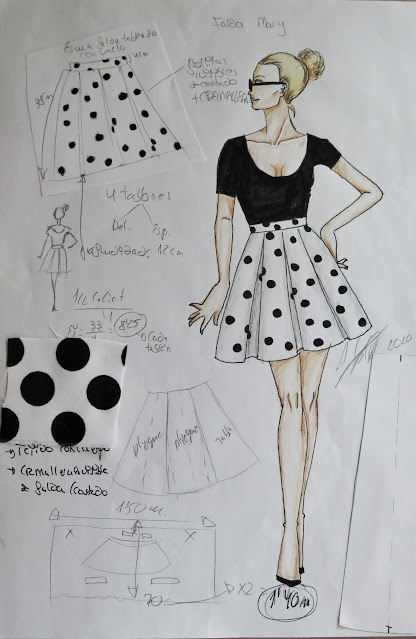 Hoy quiero presentarte este nuevo diseño de falda, pero mostrando parte de lo que es la elaboración de bocetos.