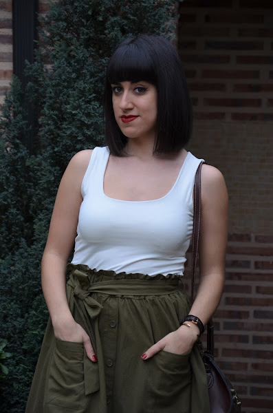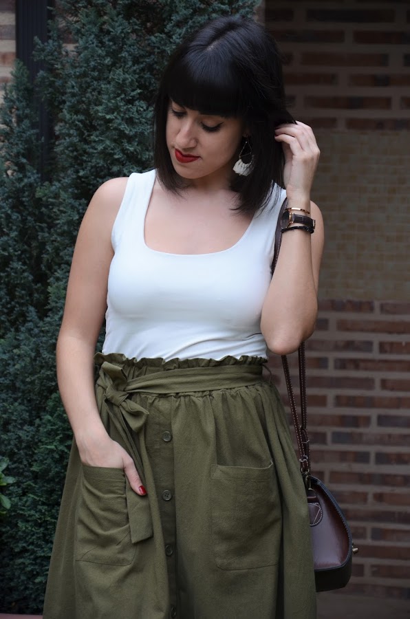 Pero claro, también tiene sus cosas buenas como que ya podemos ir haciendo cambio de armarios, sacar vestidos, faldas, camisetas fresquitas... y yo empiezo la temporada con esta genial falda midi de volantes, con bolsillos y lazada de Shein.