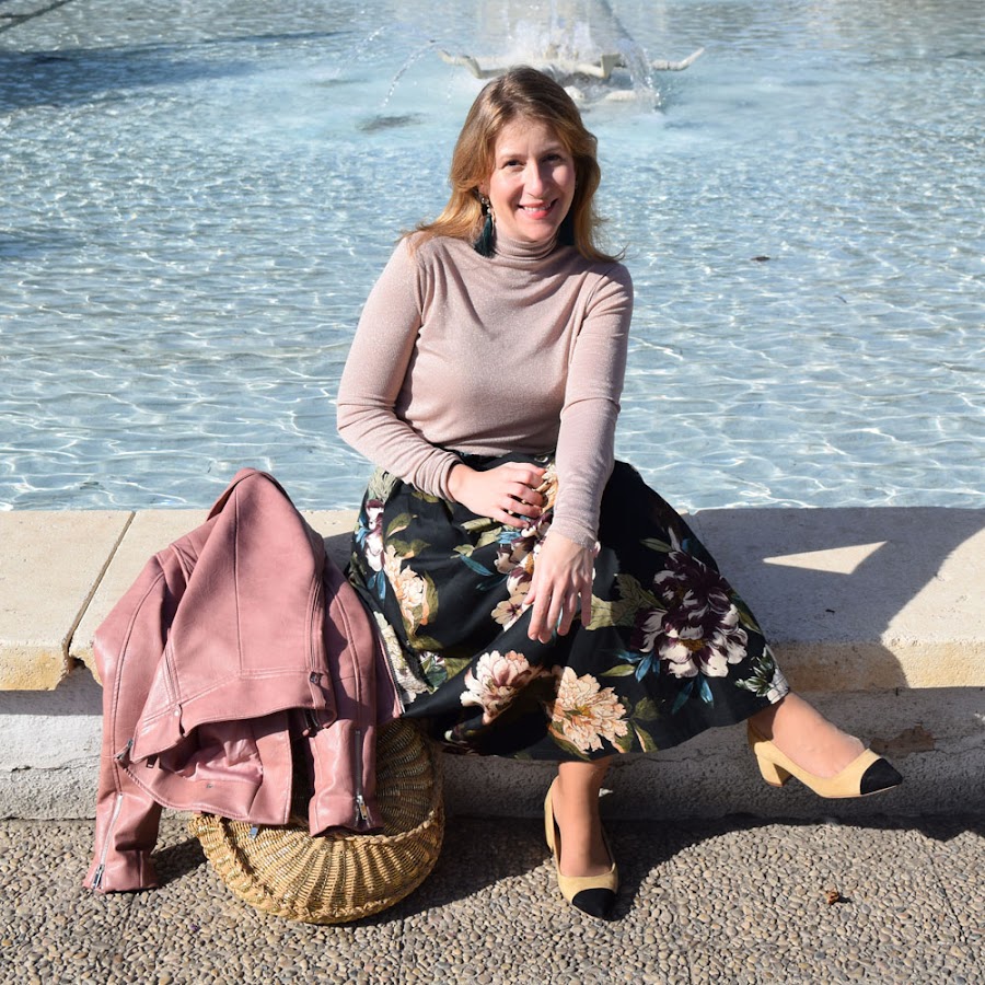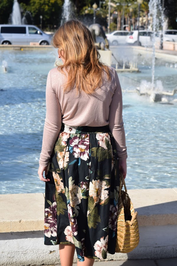 Apta para todo tipo de prendas en la parte de arriba, en este caso me servía con un jersey finito en rosa para contrastar, con un toque de brillo, ideal para estas fechas.