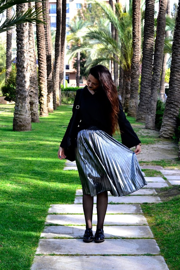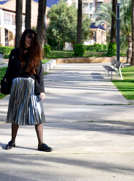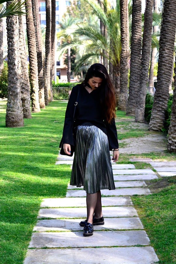 Llevaba muchísimo tiempo detrás de una falda midi de éste estilo, fue verla y enamorarme a primera vista. Es más, no sólo cayó esta, sino otra más plateada pero en su defecto, mini -tengo una gran obsesión por toda prenda que brille- Ya la veréis en próximos posts.