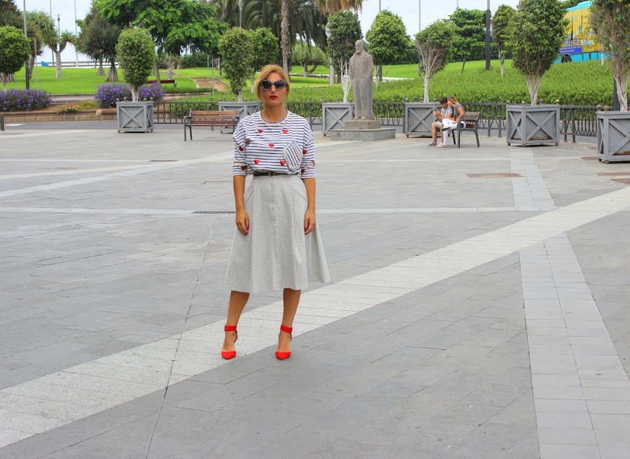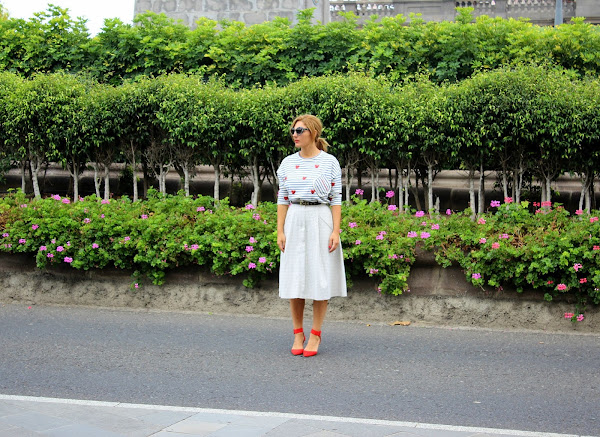Flared Blouse and Midi Skirt Hoy os enseño un look compuesto por prendas que ya han aparecido en el blog. La falda, que es una de mis preferidas, es muy fácil de combinar con todo. En ésta ocasión con una blusa acampanada que tiene muchos años, la verdad que ni recuerdo cuántos, pero está intacta y me parece preciosa. ¿No os parece?. Los zapatos también son de temporadas pasadas y tienen un tacón ...