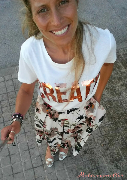 Mi tercera opción es la más arriesgada, combinaremos dos estampados con las mismas tonalidades