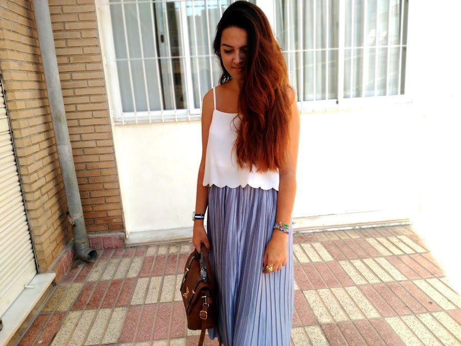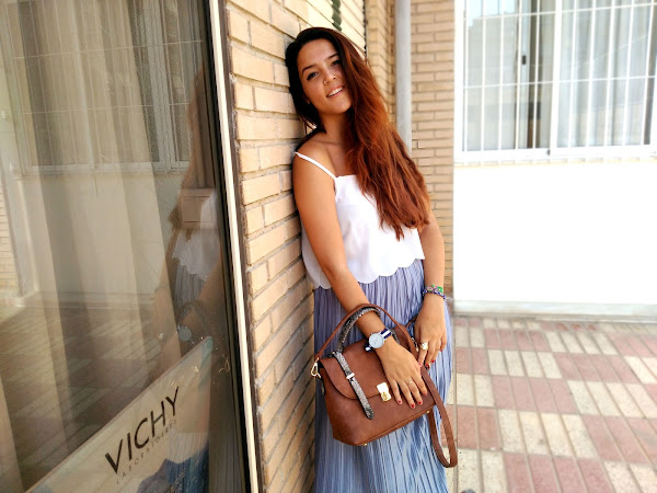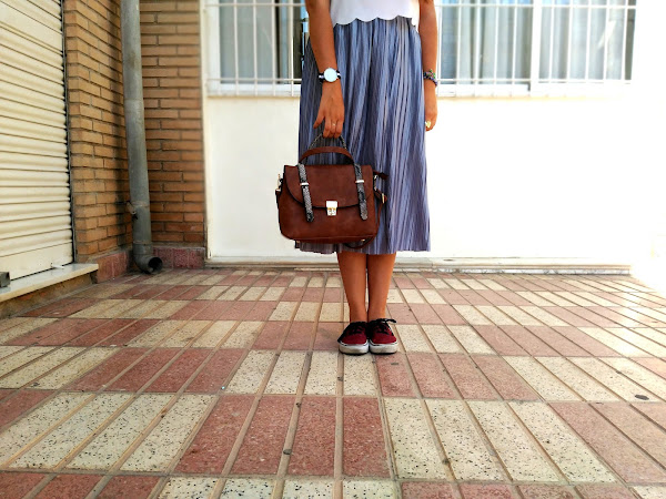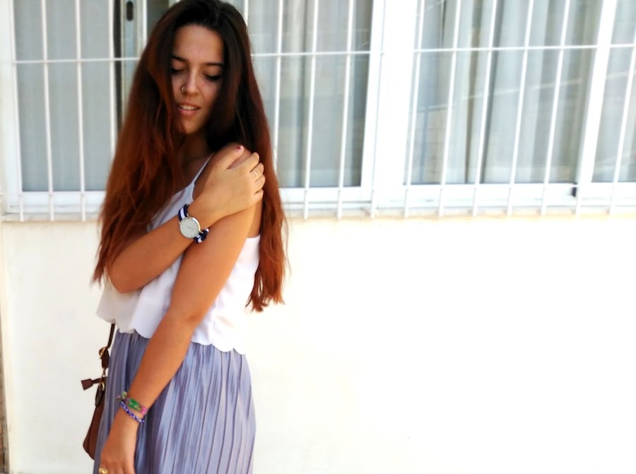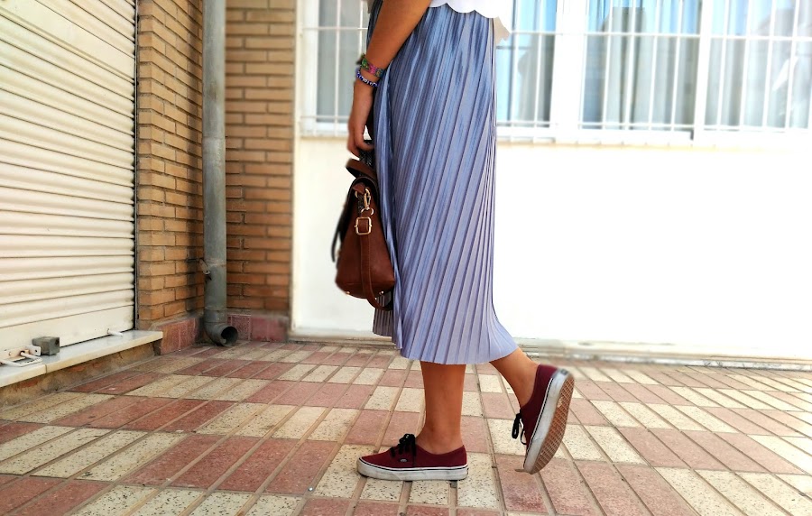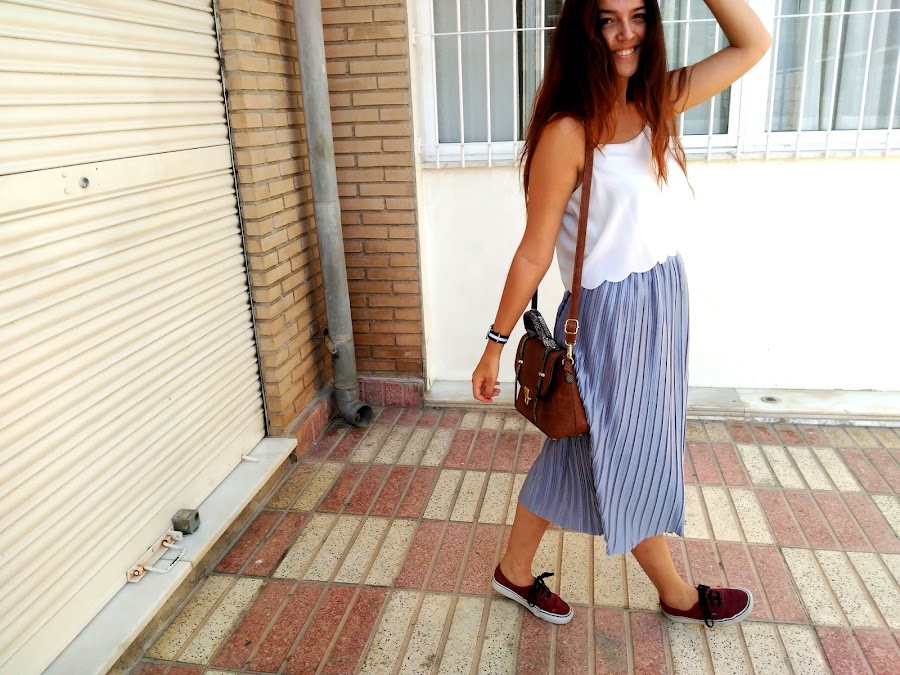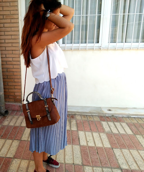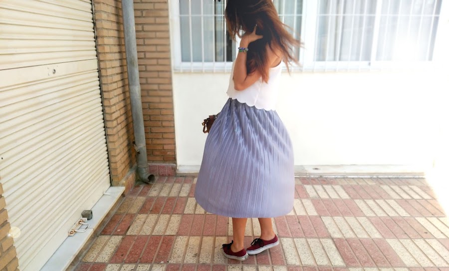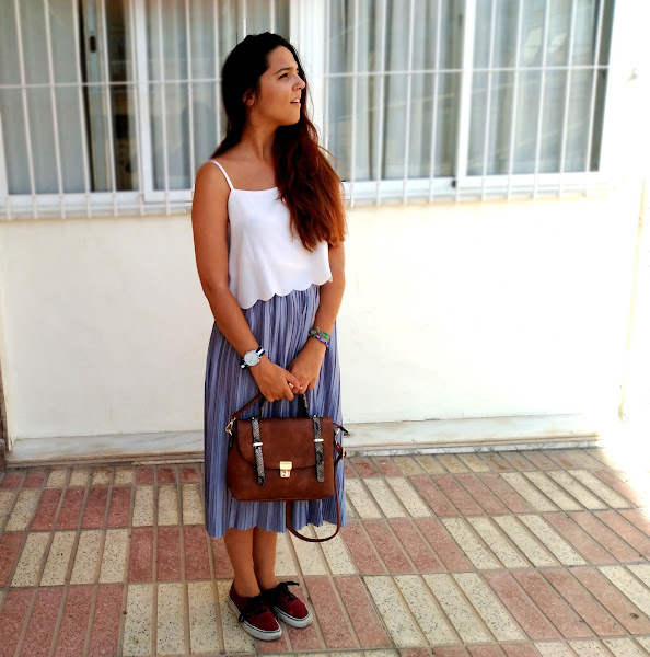 Quise jugar un poco con ella y hacer una combinación poco común, con varias tonalidades de colores que no tuvieran relación entre sí y prendas poco usuales para lo que habitualmente estamos acostumbradas a ver con este tipo de faldas Así lo combiné con esta preciosa blusa con bordado redondo en la parte inferior, me coloqué mis vans y mi bolso tipo maletín junto con un reloj de correa de tela negra con una franja blanca. Me siento como una "princesa callejera" hahaha. A mi no me puede gustar más. ¿Qué os parece?