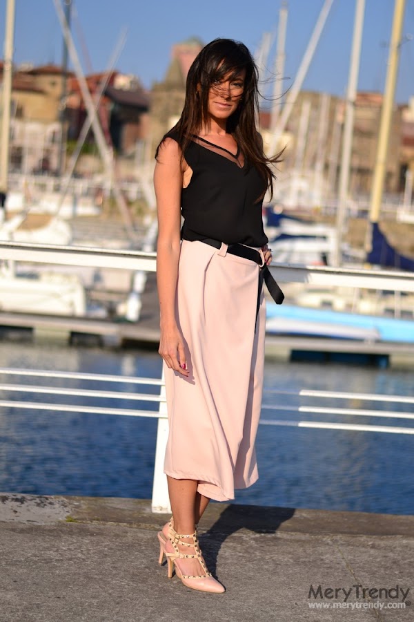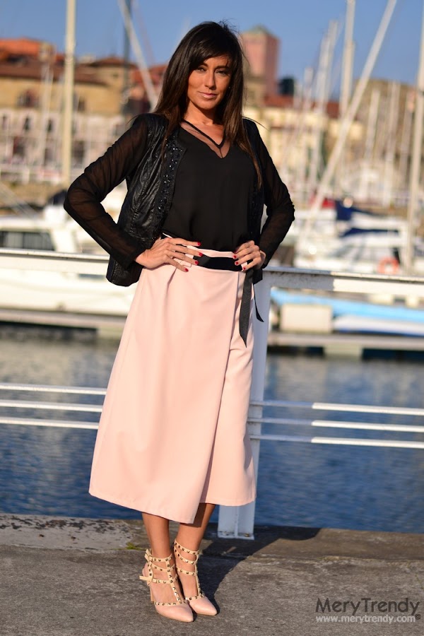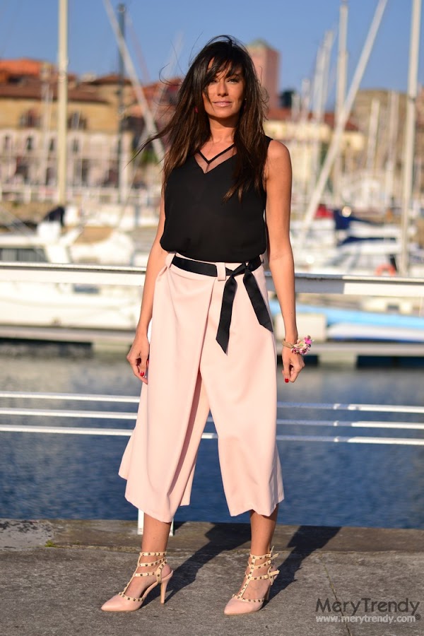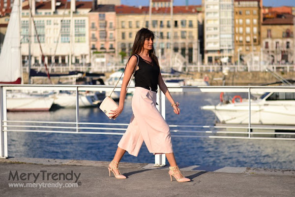 Hoy en concreto os muestro una de las prendas que me llevé tras mi visita a "El Vestidor de Angelina" como pieza central de mi look. Se trata de una falda de corte palazzo midi de talle alto y pernera ancha en tono pastel que, bajo mi punto de vista, reúne la principal ventaja del siempre casual pantalón ancho o culotte oversize (su comodidad) y de la classy falda midi (su elegancia). ¡¡¡Pura tendencia!!!
