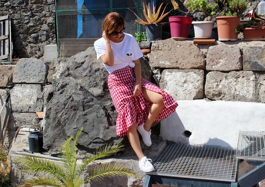 Look cómodo pero sin dejar atrás las tendencias más actuales. Como ya saben el cuadro vichy aparece en infinidad de prendas, por no hablar ya de los volantes que se ha convertido en una verdadera locura.