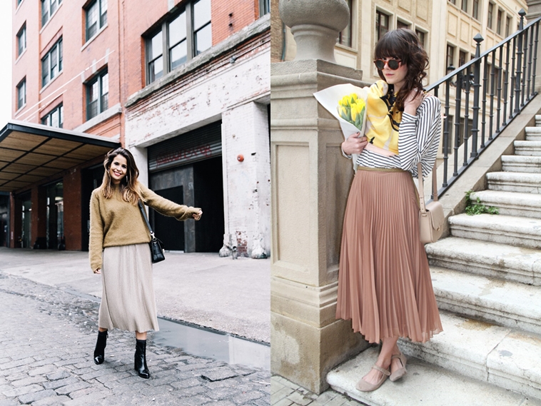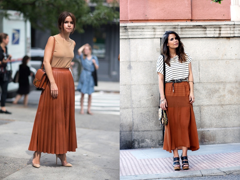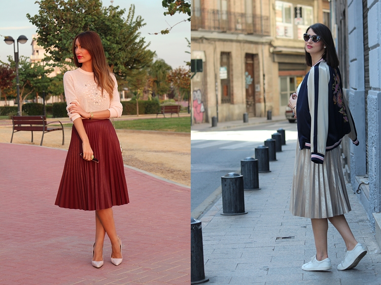 ¿Qué usar con faldas midi plisadas? El mejor calzado vuelven ser las bailarinas, para darl un aire desenfadado así como romántico y dependiendo del estilo de la falda, para las más casuales incluso sneakers y botines.