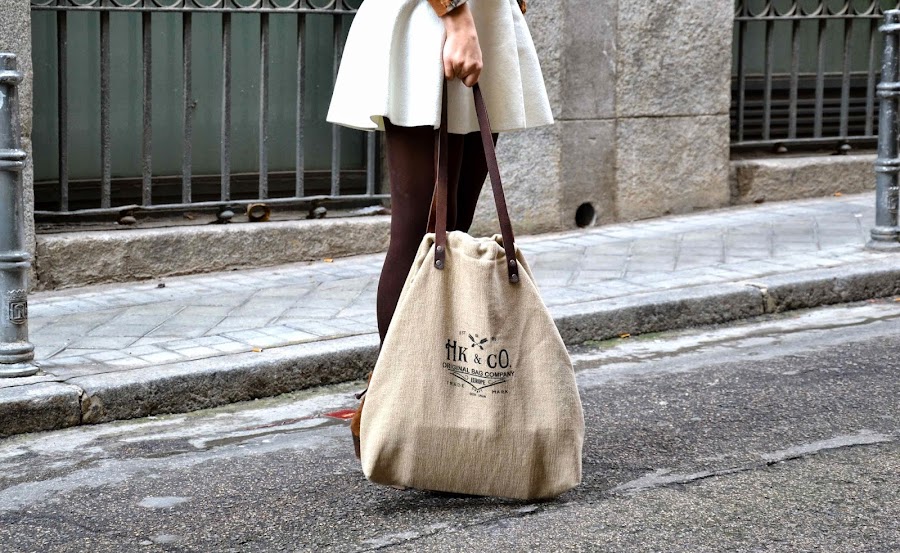 Este fin de semana hemos vuelto a los días grises y a la lluvia, y también a las medias :( Pero para darle un toque más primaveral al look, aproveché para estrenar esta mini blanca y darle un poco de luz al día. La combiné con tonos marrones, con este top de flores vintage, de mi querida Susi Sweet Dress, y ese super bolsazo-saco de Hakei que me tiene enamorada.