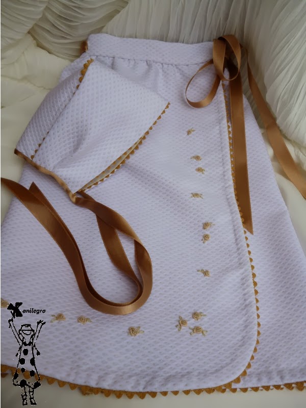 El faldón está hecho entero a mano , lo digo por las que os apetezca hacerlo ,pero no tengáis máquina de coser, no hay problema , y la que lo quiera coser a máquina pues tampoco , aunque los remates quedan mucho más bonitos a mano