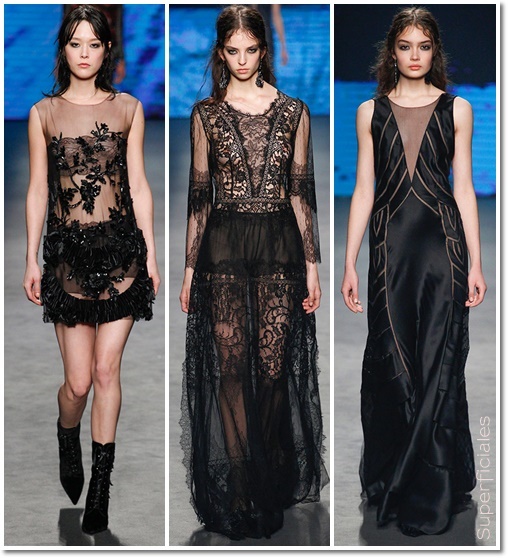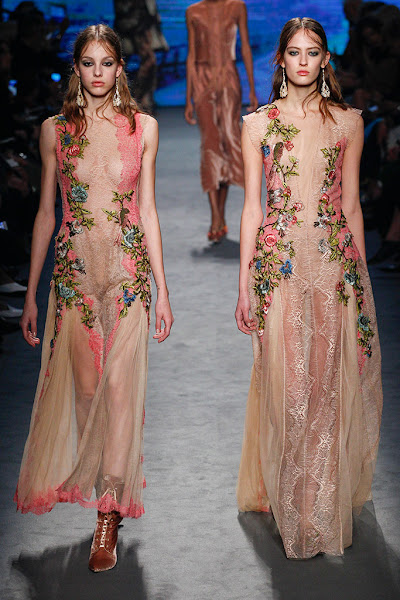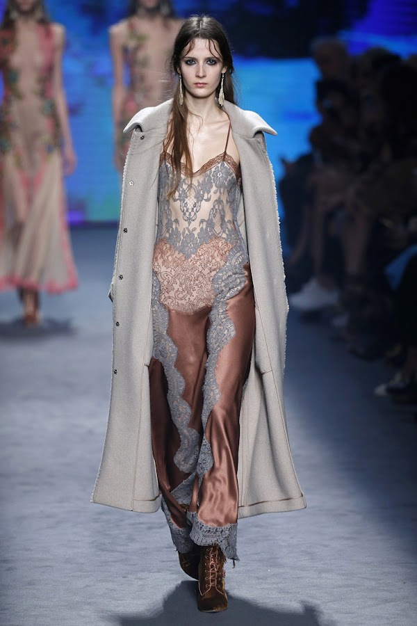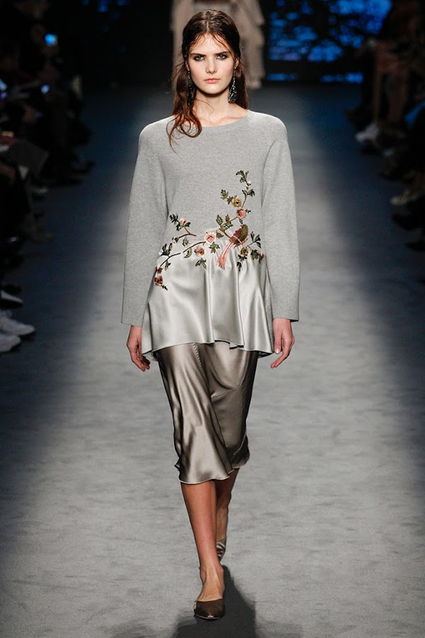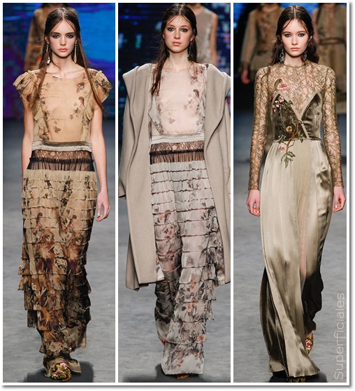 La femineidad y sensualidad aparecen mágicamente sobre la pasarela de la mano de sus estampados de ramas, flores y pájaros. Transparencias, encajes y sedas se unen en una delicada armonía. Y vuelve el estilo lencero, y es que hay vestidos que parecen realmente lencería para estar en casa, eso sí, de auténtico lujo.