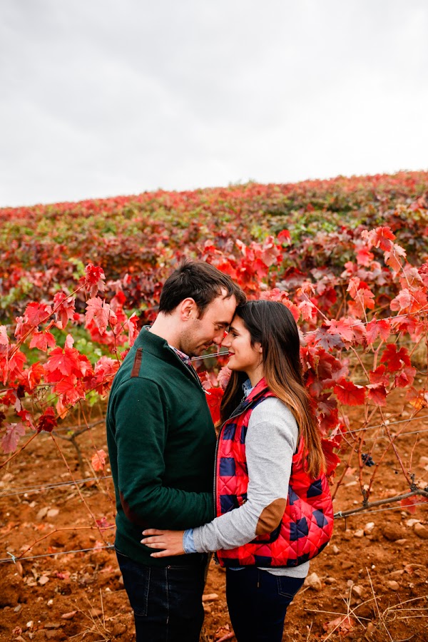 Mientras estábamos investigando la zona a través de las serpenteantes carreteras de la Sierra, vislumbramos a lo lejos un enorme viñedo rojo. Todo rojo. Y me sentí en mitad de un sueño otoñal. No pudimos evitar perdernos entre sus vides y admirar la belleza de todo aquello. El resultado... ya lo imagináis.