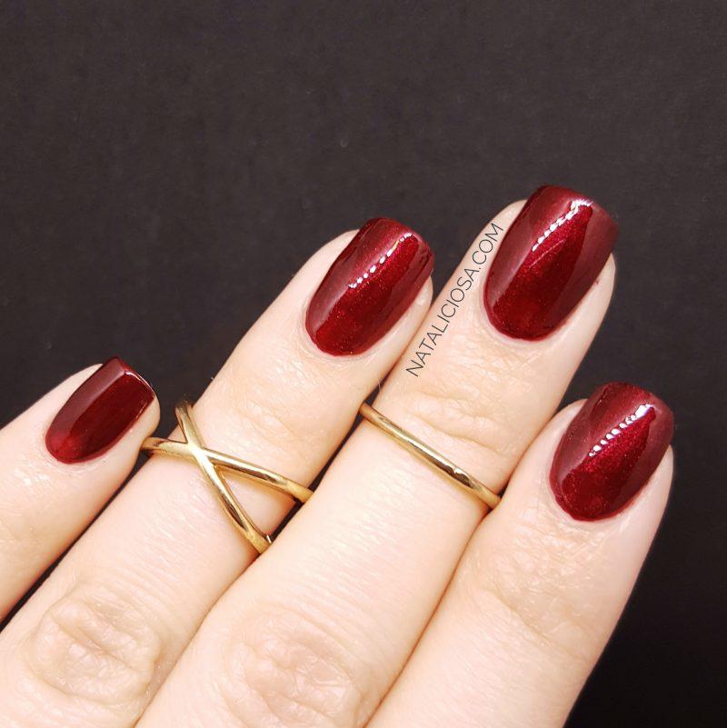 Como veis es un esmalte de uñas rojo oscuro lleno de shimmer -purpurina muy fina- rojo brillante. Este detalle le da un efecto de profundidad y elegancia, ¿estáis de acuerdo?