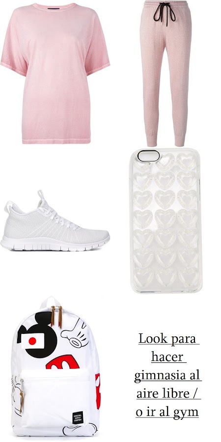 A third look for the gym / gymnastics outdoors in which I choose pastel pink again combined with white shoes, bag and cover for mobile.