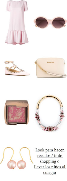 Another look to go out to do errands / take the children to school / go shopping in which chosen pastel pink or dusty, trend this spring with dress and dancing the same tone, jewel necklace to give a chic touch and always always with a little blush.