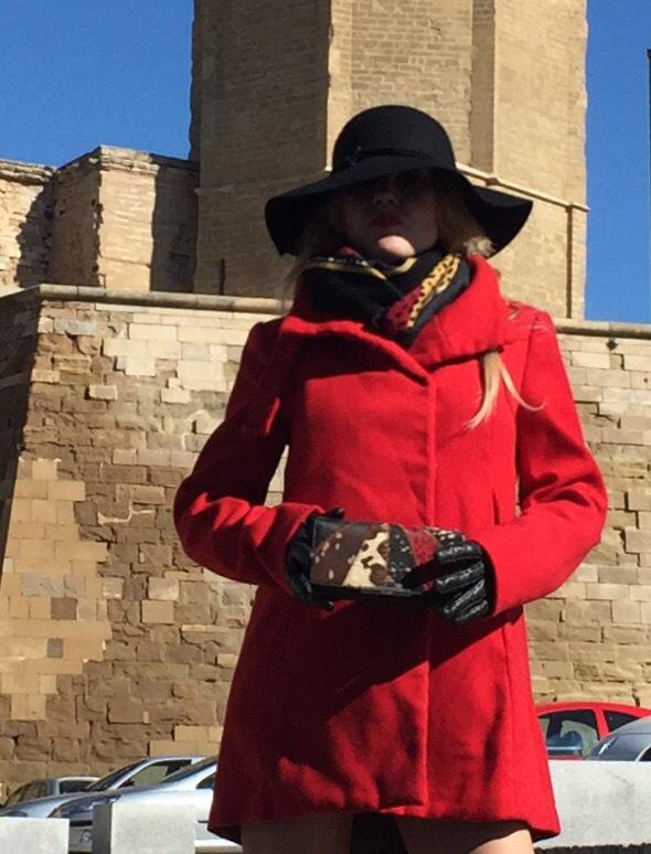 In my outfit I wear red laced sandals ss16 and red coat from Mango. Animal print scarf and wallet from Bimba & Lola. A black hat and a zebra printed collar from DayaDay and the black scalf leather from Cynthia boutique.