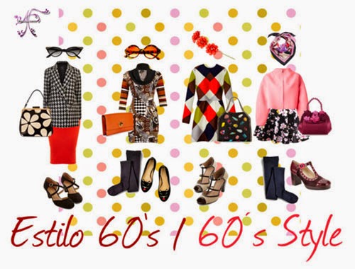 A style that evokes rebellion and style of that time, imitating its retro air. It is a style wherein contrast are important, for example acid colors and hounds tooth print, very short skirts imitating Mary Quant and pencil skirts to the knee, flats and high boots, dresses with geometric shapes, retro air shoes with width heel, short coats and op art or geometric patterns, as well as details on vinyl or plastic. It is a nostalgic style that mixes innocence and mischief, with a nod to retro.