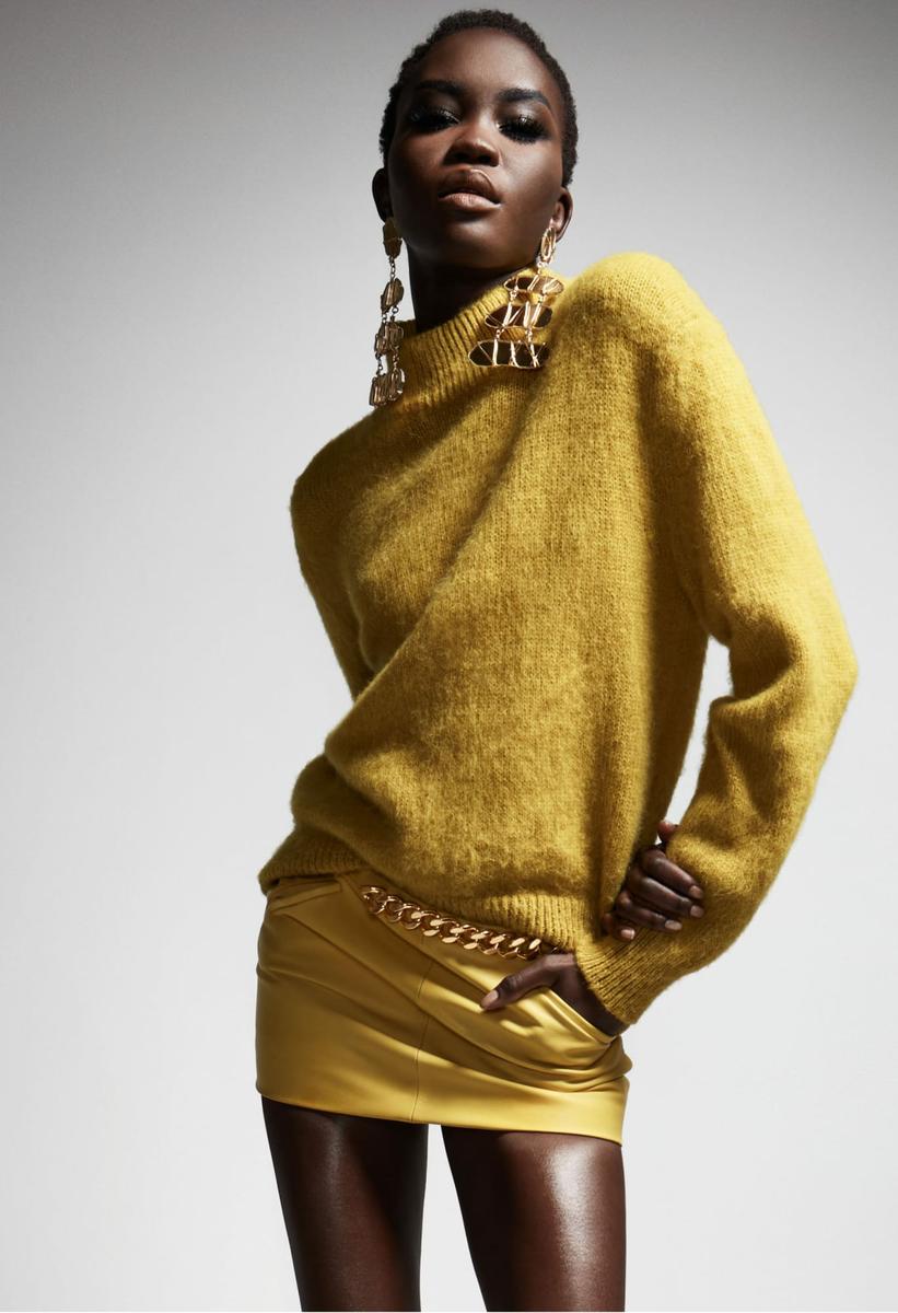 “Feeling beautiful gives you strength”. Una colección con piezas para todos los días en una paleta de tonos oscuros combinada con tonos olivo, mostaza y azul. Agregó también mucha textura con lentejuelas y tejidos en crochet para elevar piezas de todos los días. Pero no olvidó cerrar con sus característicos vestidos que gritan glamour.“Feeling beautiful gives you strength”. A collection with everyday pieces in a dark-colored palette combined with olive, mustard, and blue tones. She also added a lot of texture with sequins and crocheted knits to elevate everyday pieces. But she did not forget to close the show with her characteristic dresses that scream glamour.