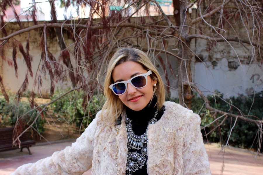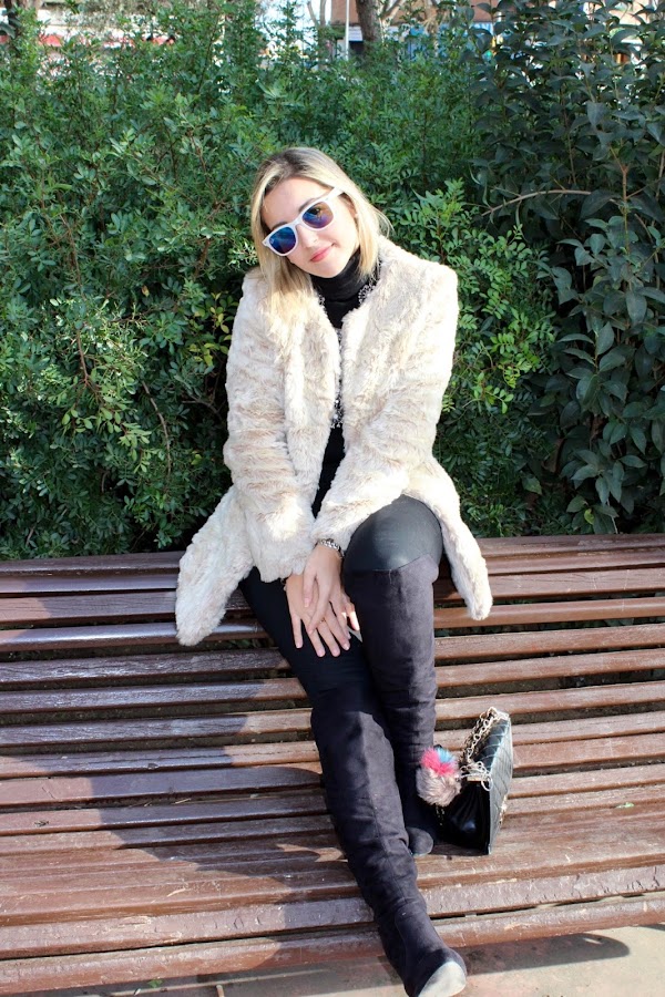 Today I show an outfit where the protagonist of the outfit is my faux fur coat that I havent worn this year, because I havent had cold yet. I wore it with a total black outfit to emphasize the coat. The accessories were my black boots over knee, my boho necklace and my bag of style Chanel.