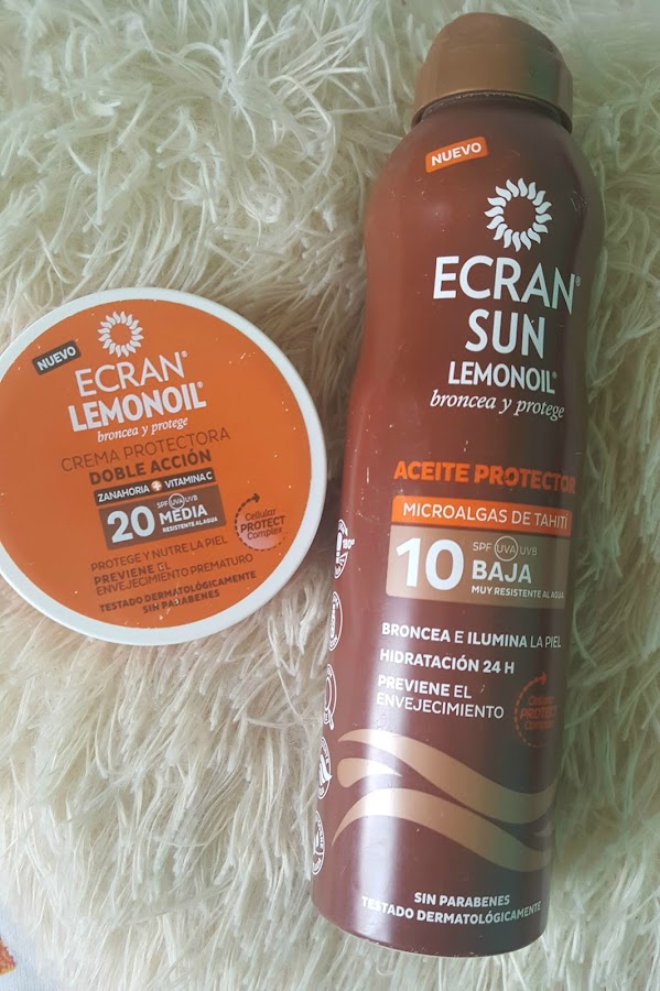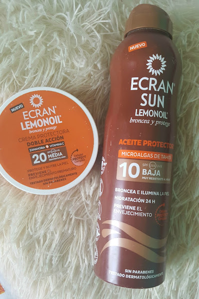 Continuando con la playa os muestro mis básicos para el sol, el año pasado descubrí estas dos marcas y desde entonces se han convertido en mis favoritisimas, una es la super conocida Hawaiian Tropic y la otra Ecran Lemonoil. No es que sean baratas pero cuidan bastante la piel del sol y su olor es INCREÍBLE.