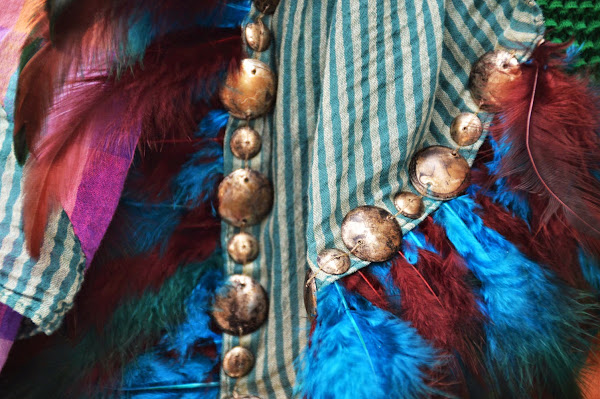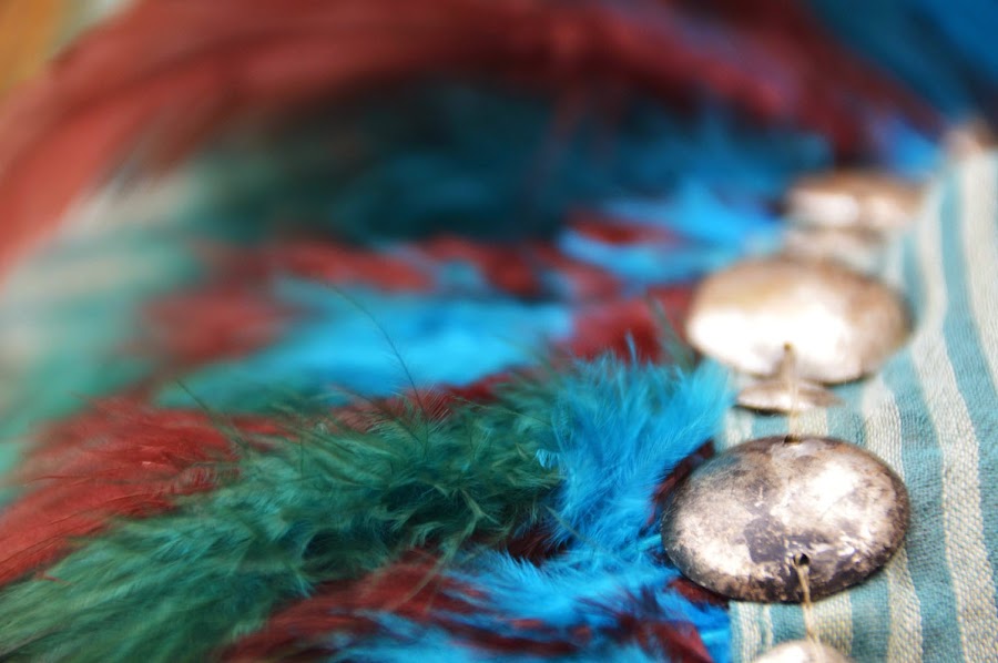 Fuchsia jeans: Easy Wear / Sweater: Sfera / Heels & Feathered scarf: Zara / Bag: Vintage