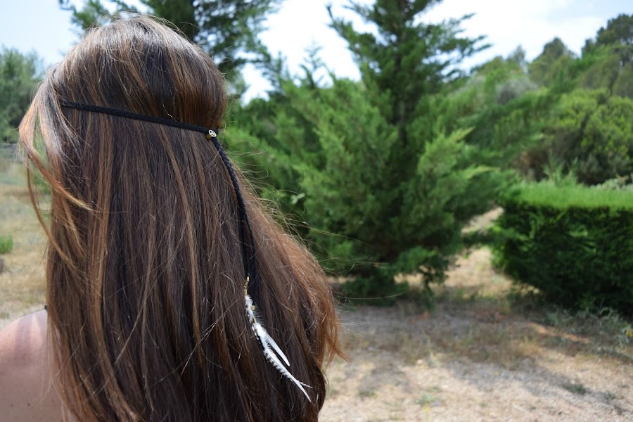 Buenos días!! De nuevo lunes pero los días son más largos y podemos aprovechar al máximo las horas. Ahora con el calor que hace apetece llevar shorts y camisetas muy finas por eso, me gusta añadir complementos un poco más especiales para adornar los looks sencillos como este. En este caso una cinta de pelo con plumas de Ibiza, una pulsera de color y mis nuevas cangrejeras de purpurina, un look todo terreno para día sin parar. Espero que os guste. Feliz Lunes!!