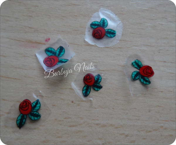 4. Con el esmalte blanco un poco húmedo ponemos nuestras pegatinas.
