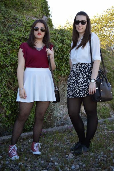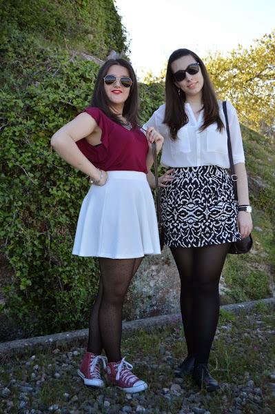 Como complementos ambas elegimos los mismos: bolso negro y gafas de sol, ahora que viene el buen tiempo no pueden faltar.