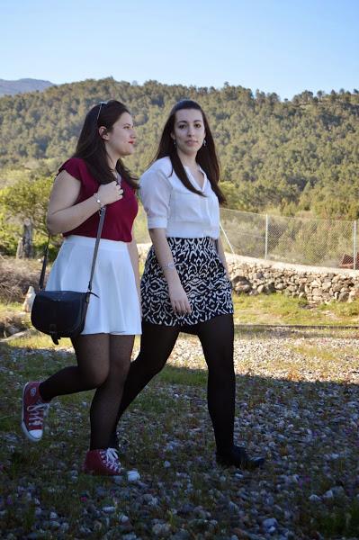 Hablando un poco de los looks, esta vez decidimos que cada una eligiera el que más le apetecía. Jessica eligió un look más arreglado con un clásico B&W, y en cambio yo un totalmente más sport combinando el rojo-blanco-negro.