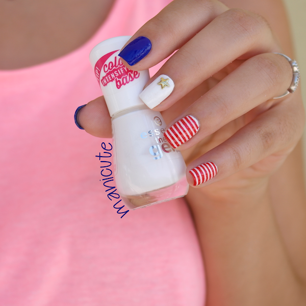 Normalmente, el rojo y el blanco se combinan formando rayas, como si se tratara de las famosas "barras" de la bandera. Además, también quería añadir a la manicura alguna estrella: como sabéis, la bandera de Estados Unidos está compuesta por un total de 50 estrellas que representan los 50 Estados del país. ¡Ah! Y también, a modo de dato curioso, os cuento que las barras blancas y rojas son un total de 13: las colonias británicas que declararon la independencia a Gran Bretaña.