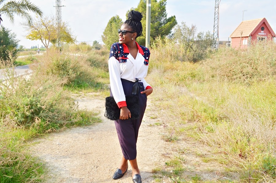 En el post de hoy os enseño otro mono que ha entrado a mi armario y ¿qué mono verdad?, tiene hombreras, la parte de abajo es culotte, lleno de color y además...VINAGE. Ya sabéis lo que adoro yo el vintage y encontrar joyitas como esta, que es una prenda única y que además solo tengo yo. Como bien sabéis colaboro con Flamingos Vintage Kilo Murcia, y os aseguro que calidad/precio no puede estar más acorde. Este es el outfit que utilicé para irme de "tapeo" el día de nochebuena con mis amigas.