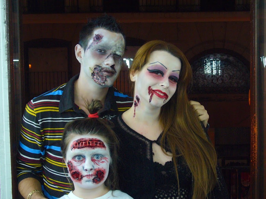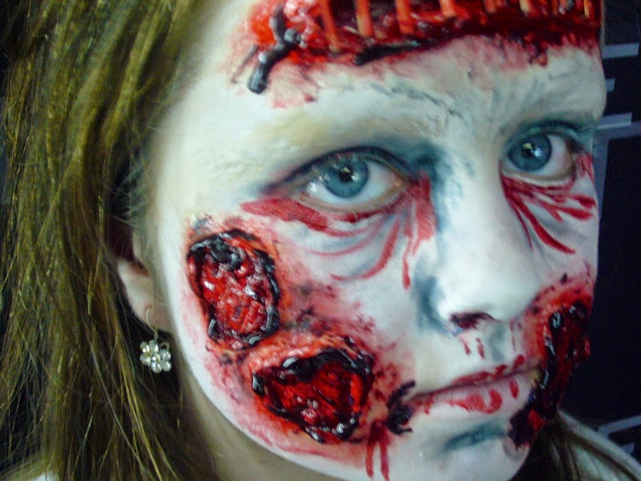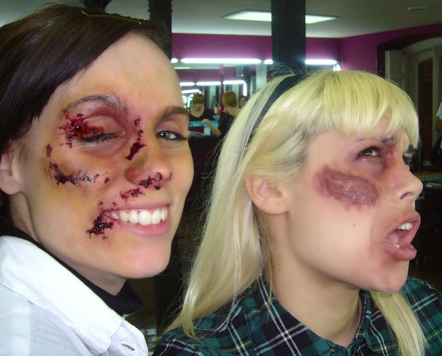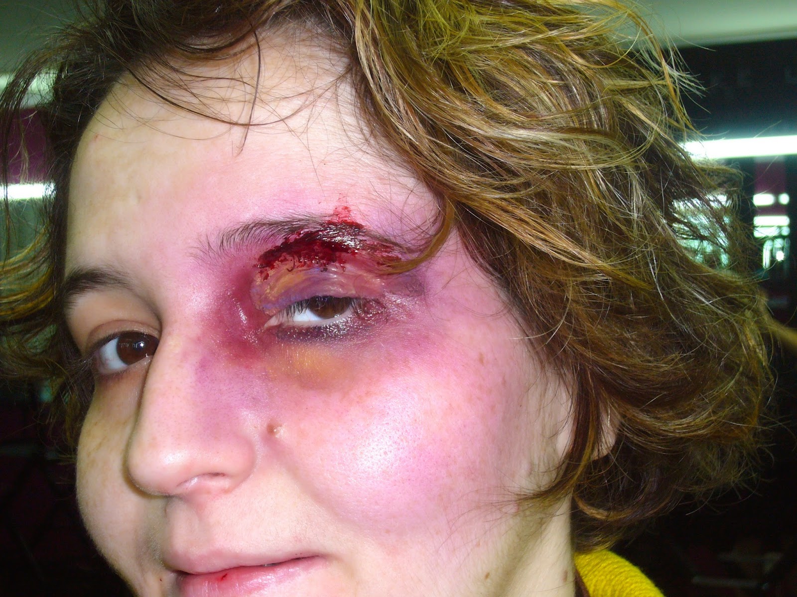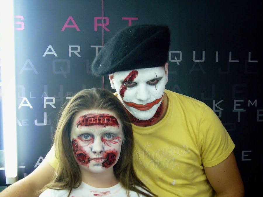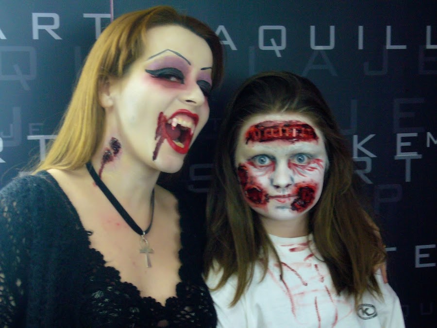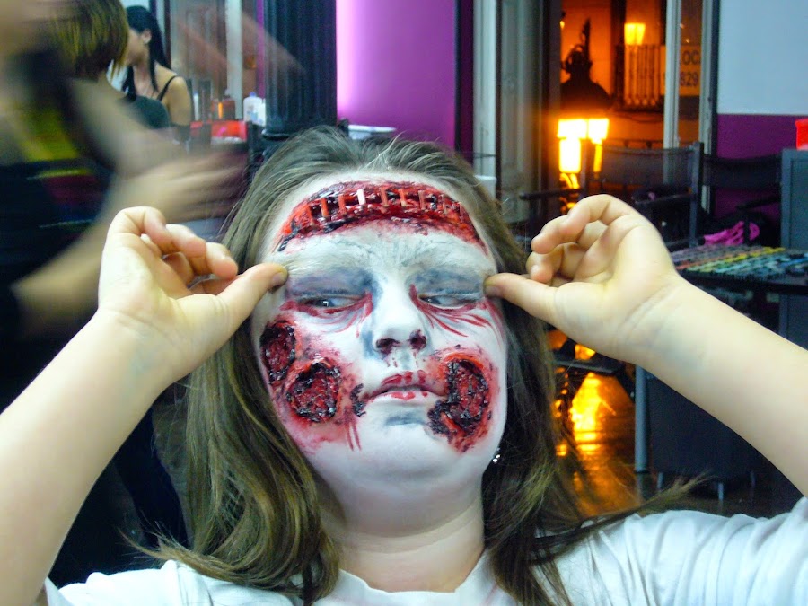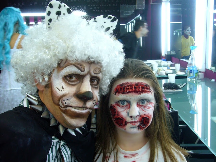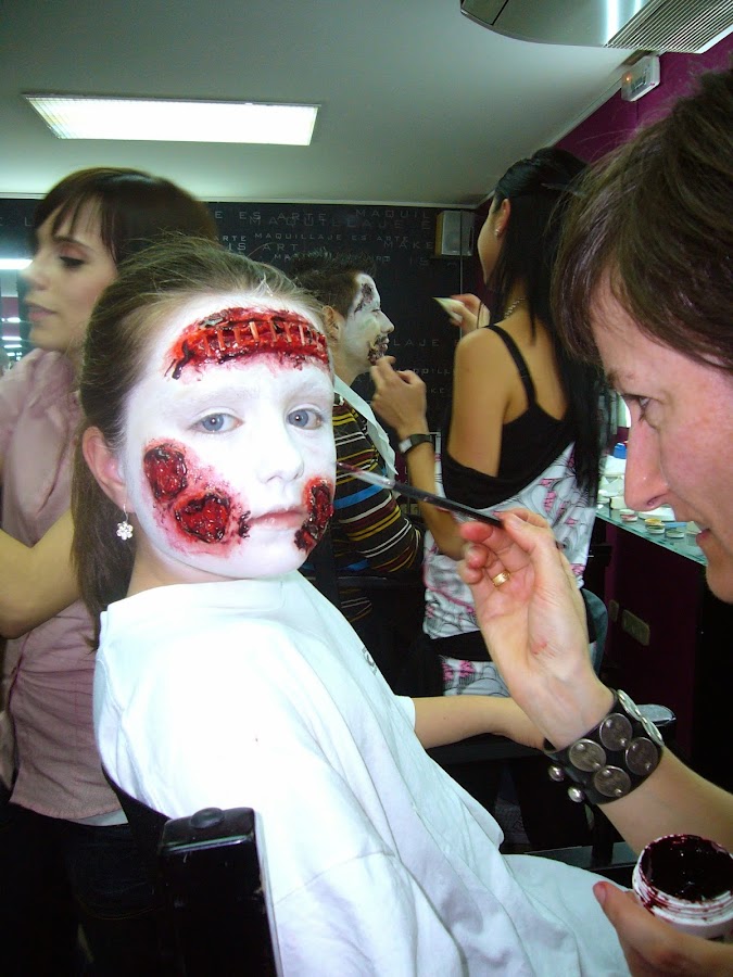 Esta fué una clase de caracterización y la primera imagen es mi famosa sobrina que me hace las fotos ahora, a la cual maquillé yo, un poquito más pequeñaja.....