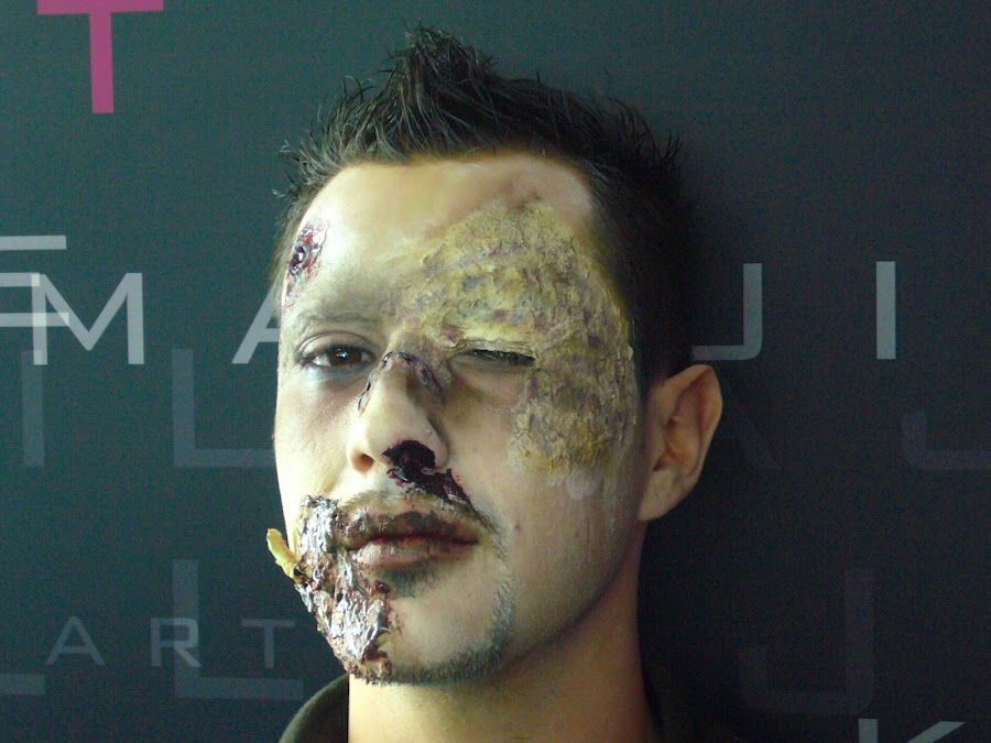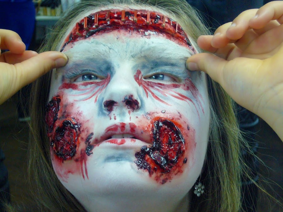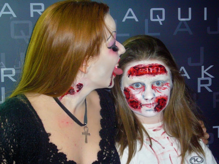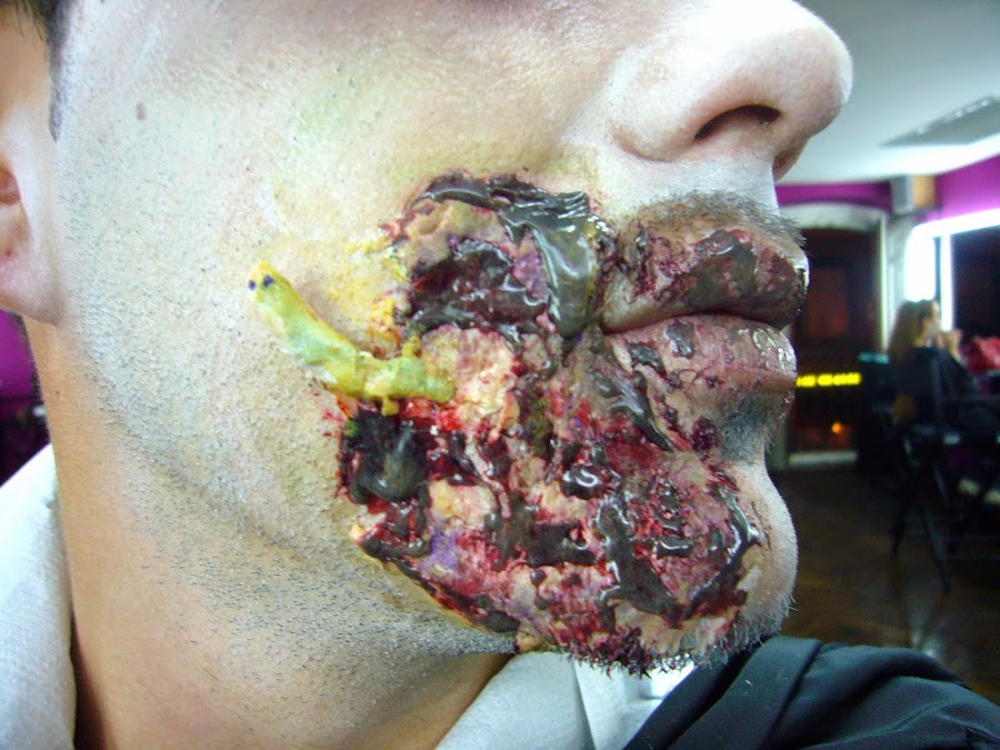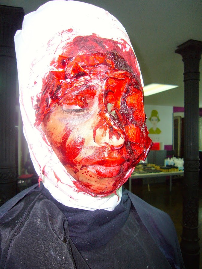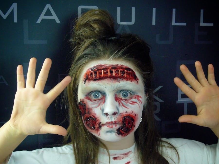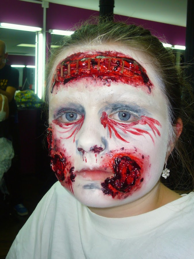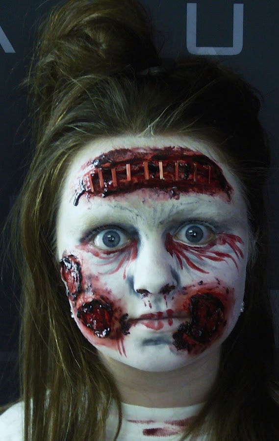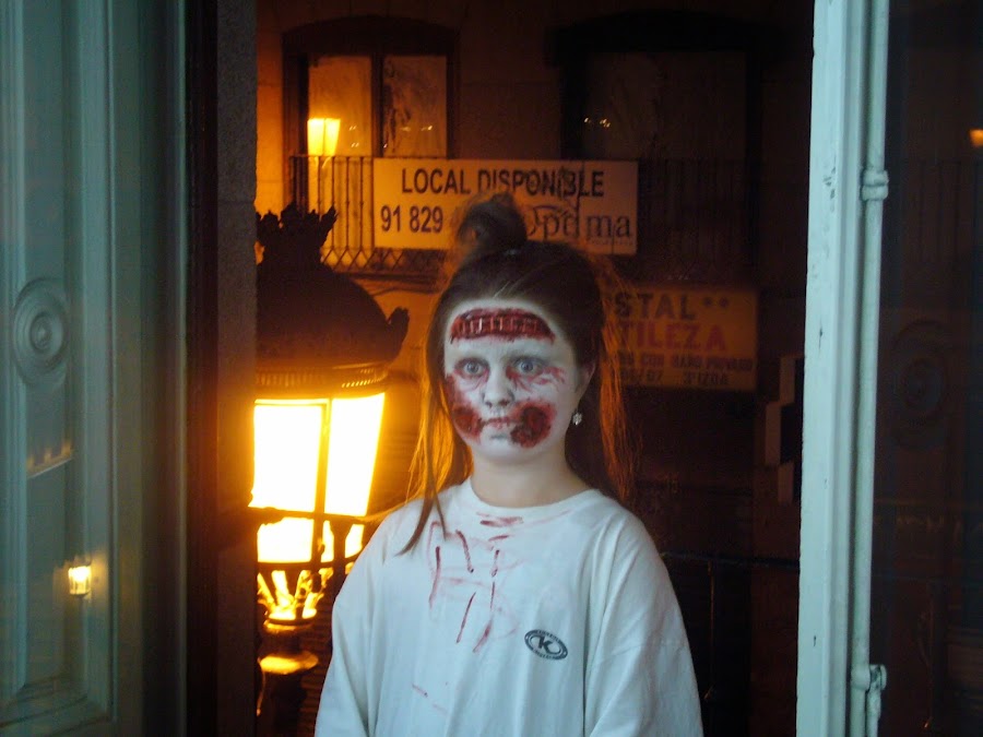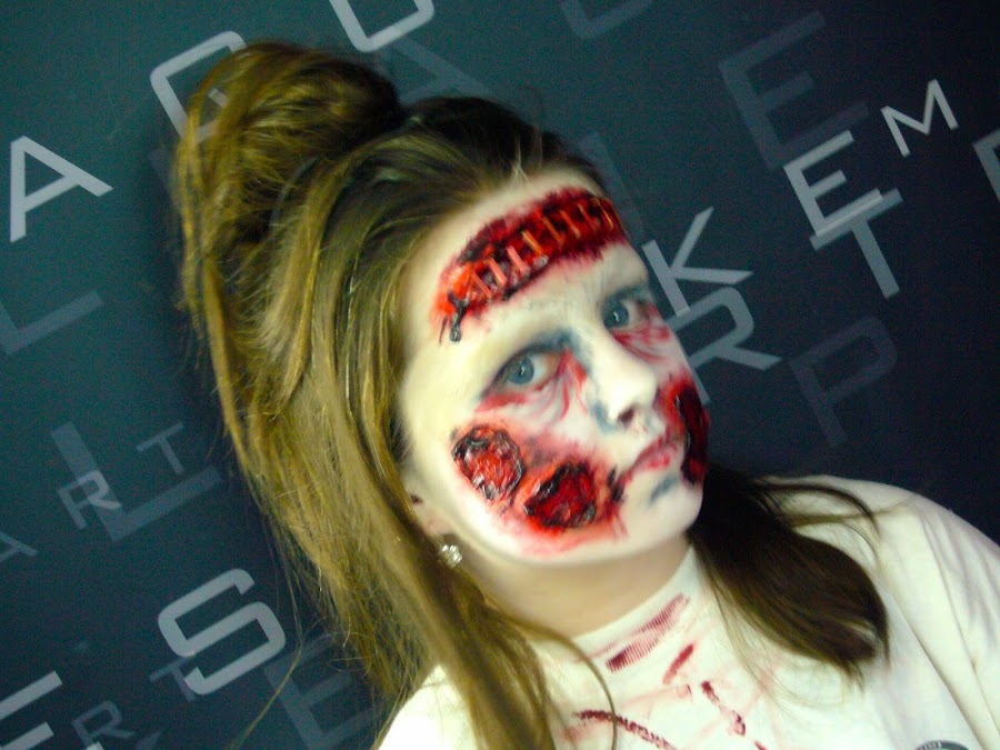 Esta fué una clase de caracterización y la primera imagen es mi famosa sobrina que me hace las fotos ahora, a la cual maquillé yo, un poquito más pequeñaja.....