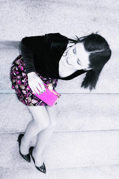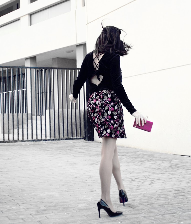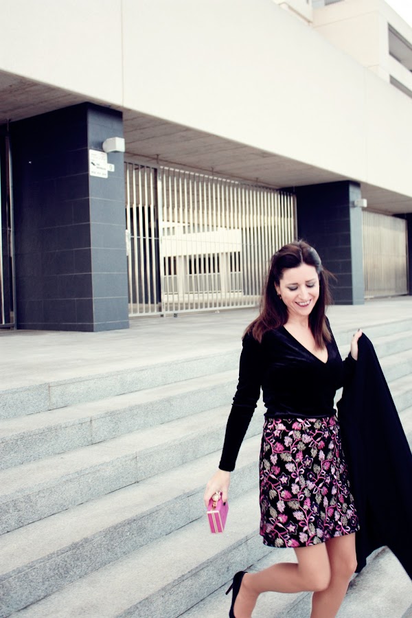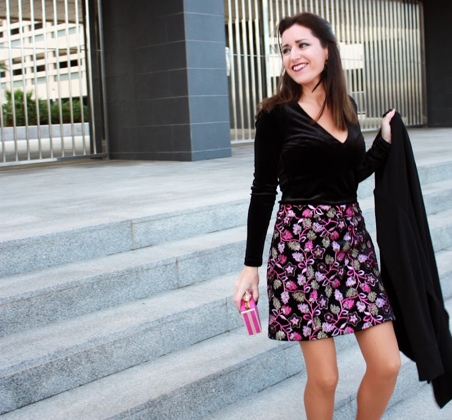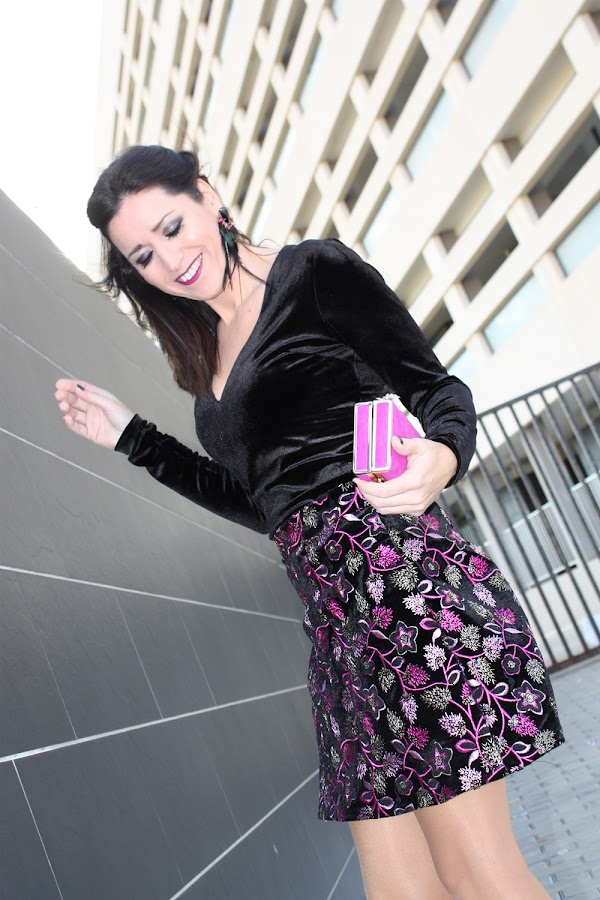 He combinado el vestido de Topshop que visteis AQUÍ , con una preciosa falda bordada en tonos fucsia y lentejuelas de la nueva temporada de Sfera.