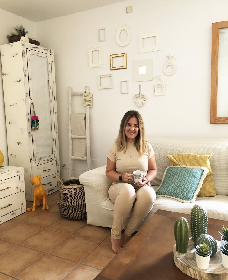 En primer lugar, este conjunto de pantalón elástico y camiseta en color beige. Estamos en una situación que pasamos mucho tiempo en casa, por eso, es importante estar cómoda sin la obligación de ir en pijama. Este conjunto en canalé me parece muy cómodo al igual que favorecedor. Últimamente no me lo quito.
