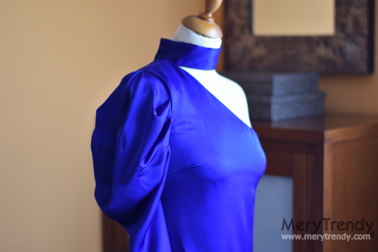 Blue Satin High Neck One Shoulder Sleeve Top - Tommi