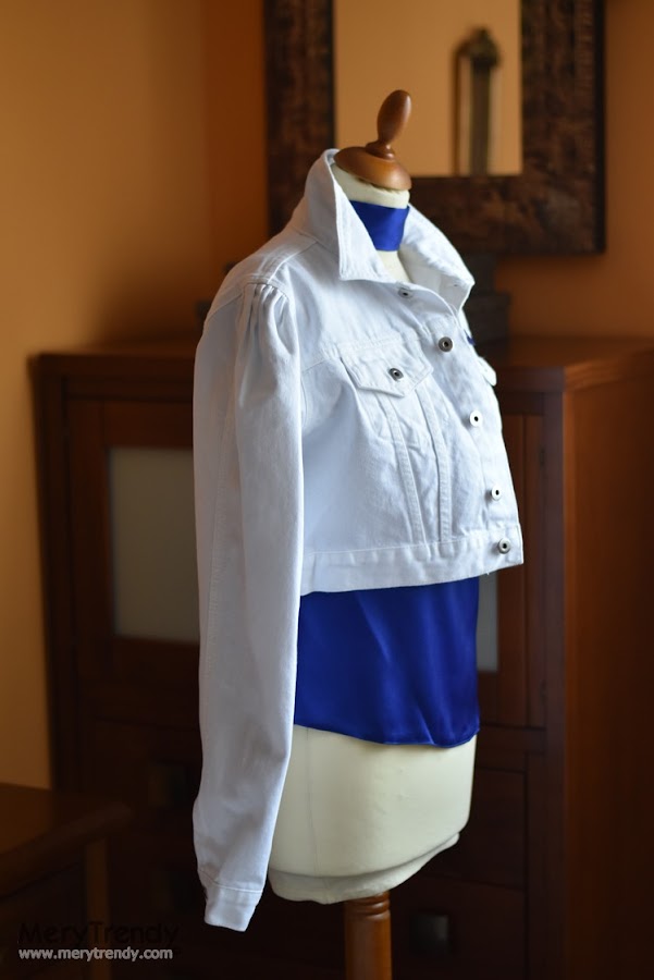Una cazadora vaquera blanca informal, tipo crop, en tejido denim algodón, muy resistente, con mangas ligeramente abullonadas, para cerrar cualquier outfit, que además ha resultado ser de una calidad excelente, así que, un acierto seguro, vamos. 100% recomendable. Nada más tenéis que fijaros, por ejemplo, en los acabados, también de alta calidad... En definitiva, una prenda que jamás pasará de moda, pero que sí es diferente al resto de las chaquetas vaqueras convencionales.