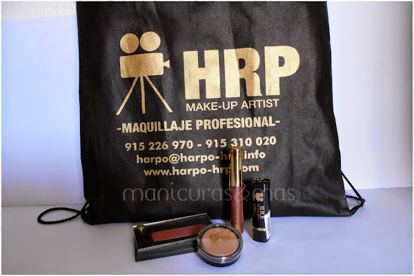 * Harpo Make-up Artist:Nos dieron una bolsa de tela con información de la marca y cuatro productos: un gloss, un labial, un maquillaje en crema y una paleta de dos coloretes.