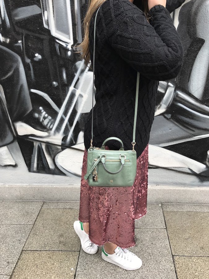 Como bolso, esta vez elegí uno de mis mini bebés en color verde menta. Fue un flechazo, amor a primera vista. Queda super mono con cualquier look, tanto con jeans como con vestido.