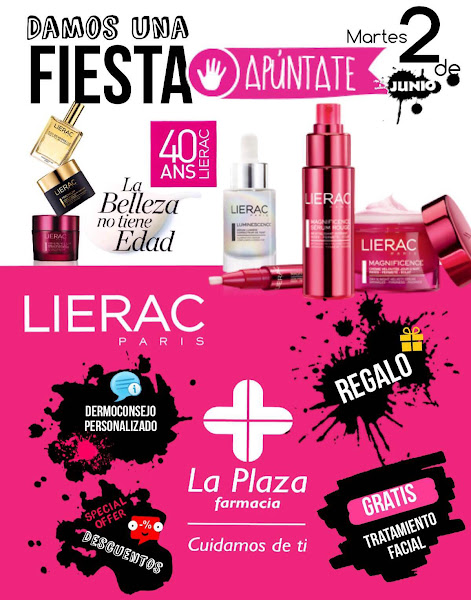 Tendrás la oportunidad de conocer la marca y de hacerte un mini tratamiento si pides tu cita , el evento se realiza gracias a la marca Lierac y a Farmacia La Plaza , situada en Chiclana de la Frontera , si estas cerca o vienes a pasar unos días por la provincia de Cadiz no te puedes perder este evento, tendrá lugar el día 2 de junio, durante todo el día , sera super cuqui, con descuentos, regalos , tratamientos gratis y dermoconsejo personalizado, entra en este enlace y pide tu cita , si tienes la oportunidad no te quedes con las ganas de conocer por fin la marca , sera muy divertido.