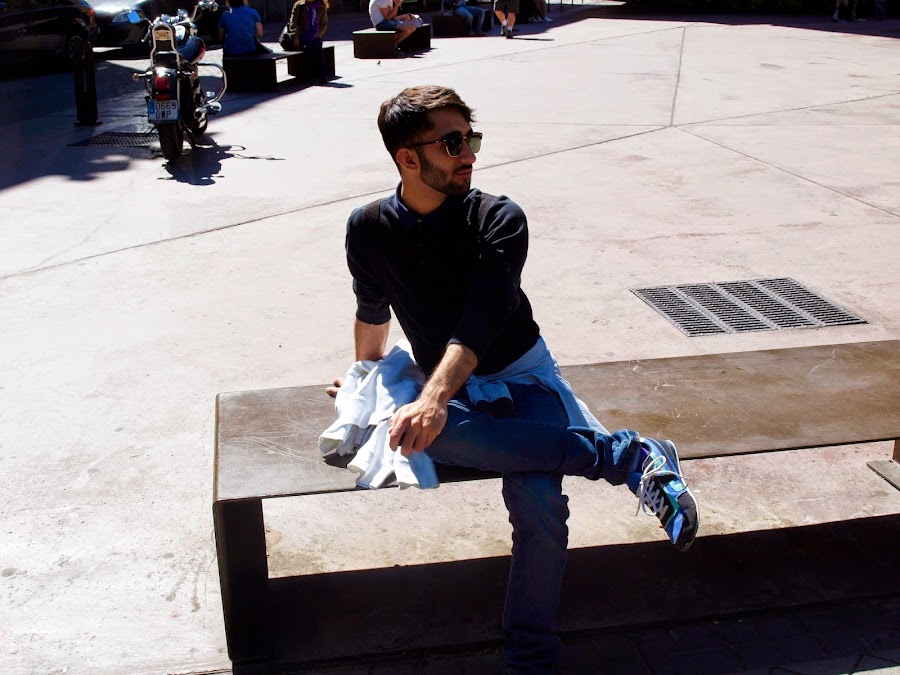Aun así, me dije ¡a la leche! Me voy de paseo por el retiro con mi primer polo azul marino en color marino y mis vaqueros más frescos. Salí por la mañana temprano y hacía algo de fresco, es por eso que en las fotos llevo una cazadora a la cintura porque me molestaba.