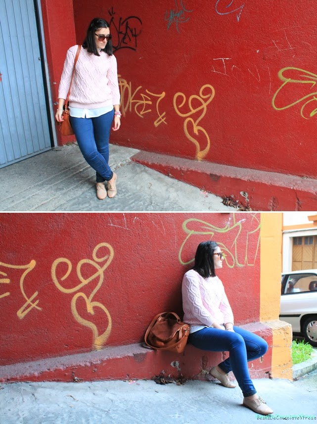 Para el primer outfit del año aposté por mi nuevo sweater de ochos en color rosa pastel, que me trajo Papa Noel el pasado día 25 de diciembre. Es calentito y además sienta genial combinado con infinidad de prendas.