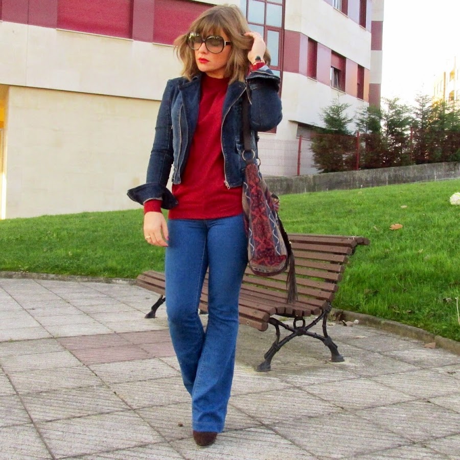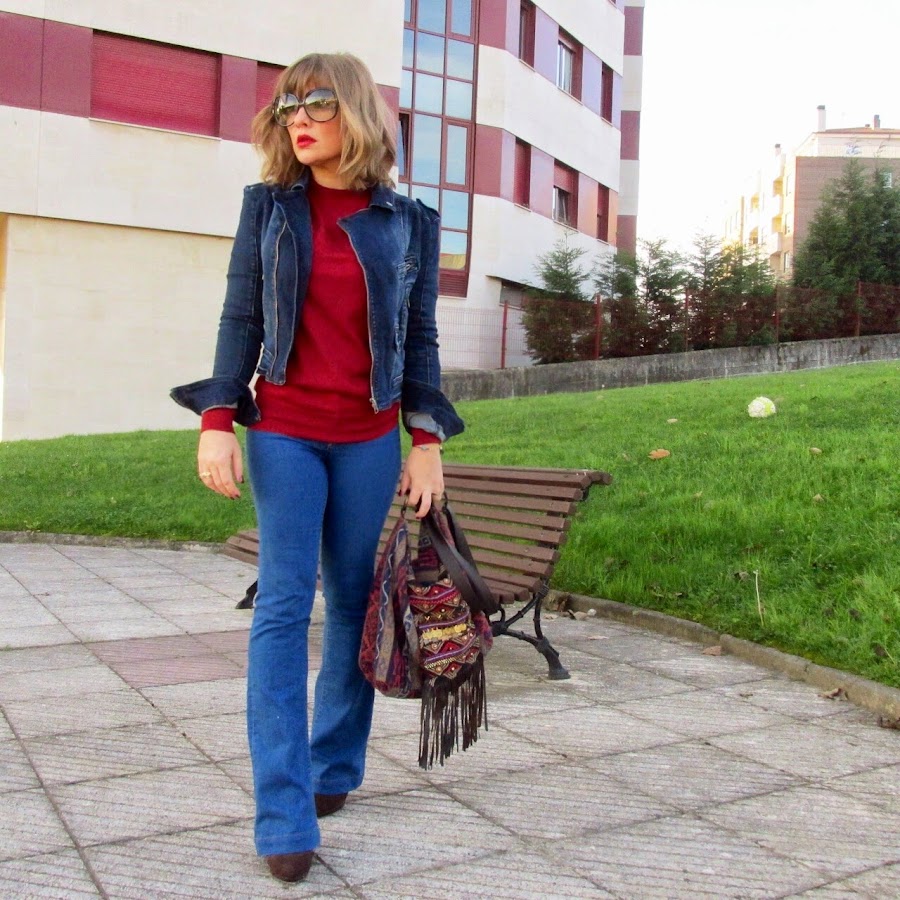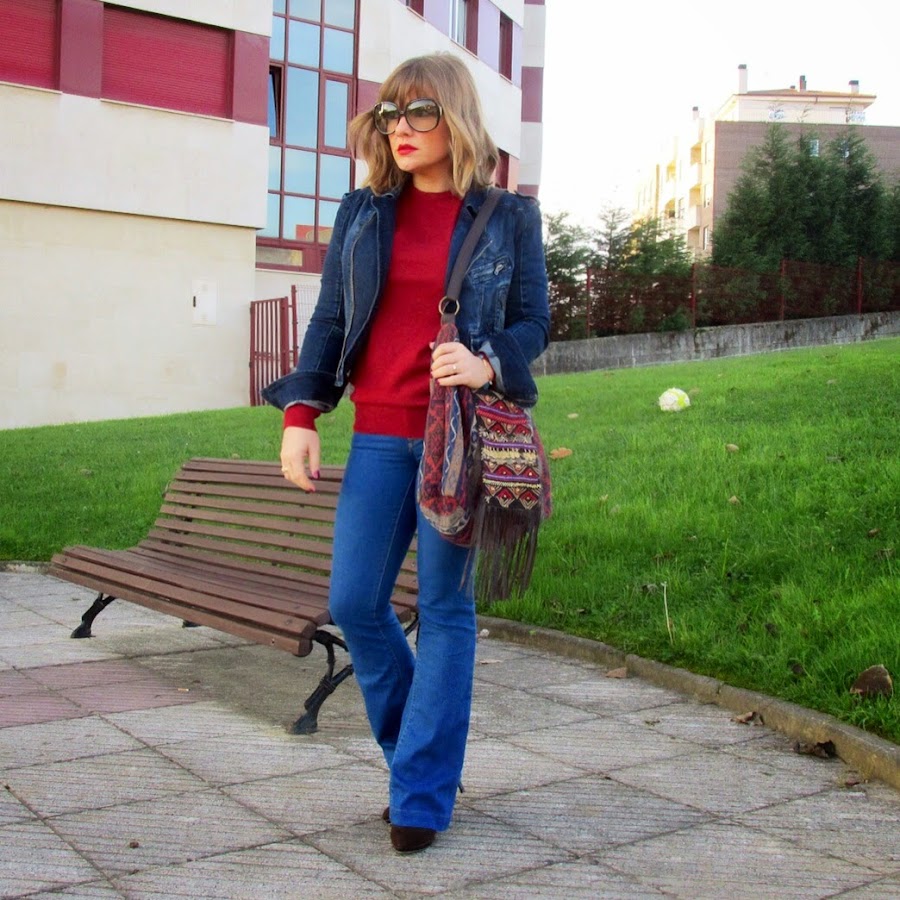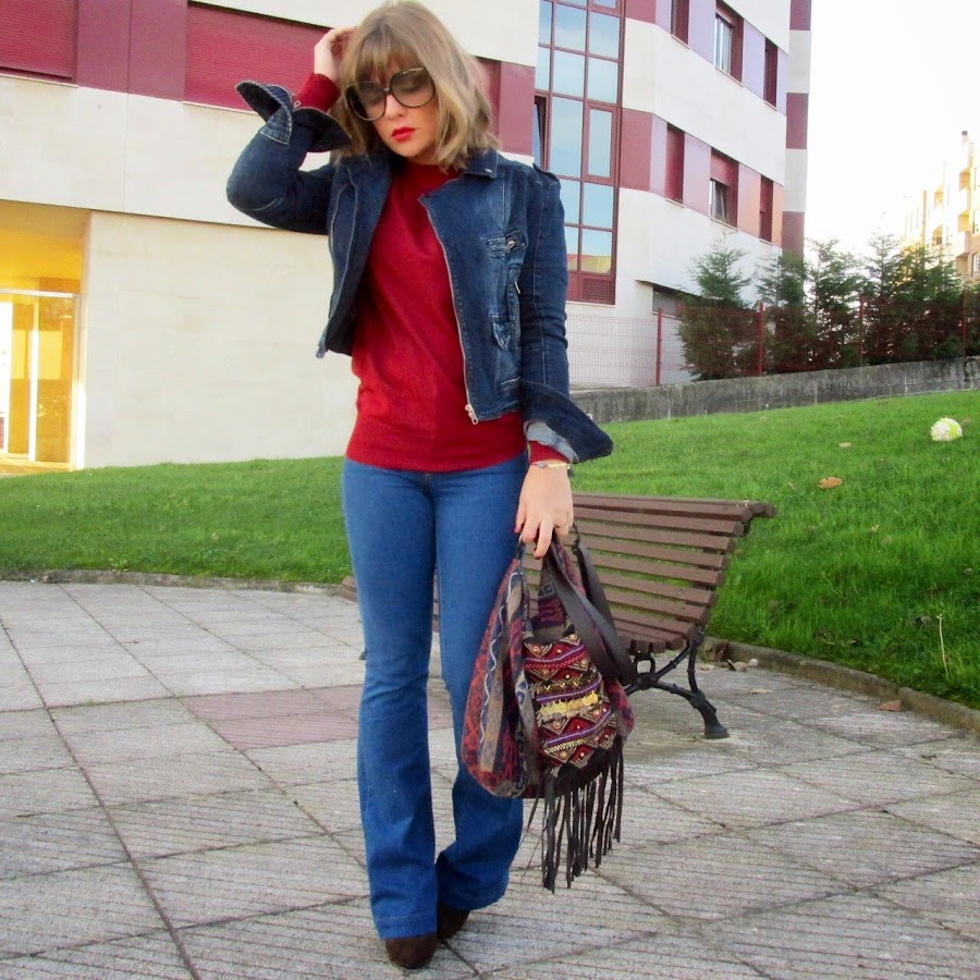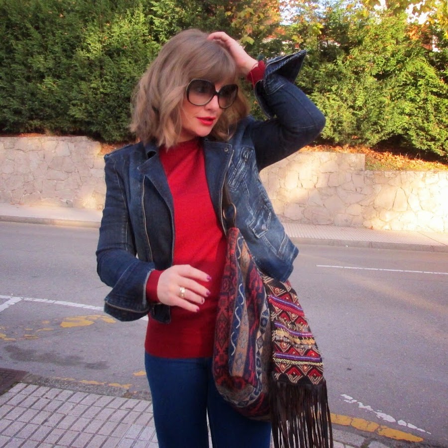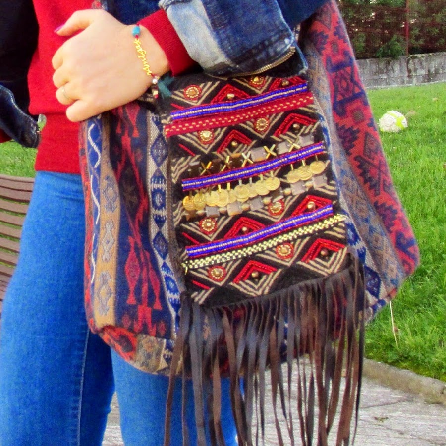 El resto muy sencillo, jersey básico y cazadora perfecto también en denim. Por supuesto éste look necesitaba el toque folk y que mejor que éste precioso bolso de Paco Martínez. Tengo que reconocer que desde que me dieron la oportunidad de amadrinar uno de sus bolsos y conocer esta firma un poco mejor, me ha conquistado.
