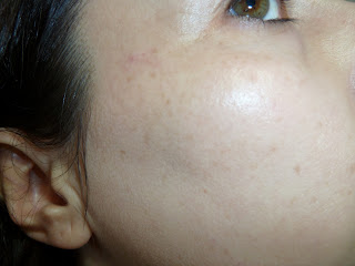 Esta es mi piel recién limpia e hidratada. Y ahora os muestro la foto con la ampolla de belleza. Únicamente he aplicado este producto, no le he puesto por debajo ningún corrector para las manchas, porque de esta forma creo que podréis apreciar la diferencia y la uniformidad que da al rostro.
