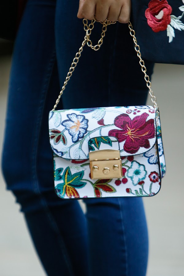 El bolso me pareció un gran reto, ya que no sabía cómo iba a quedar exactamente con la americana. Pensaba que tanta flor quizá sería demasiado. ¡PERO valía tan solo 10$! Y sabía que tenía que sacarlo a la fuerza. ¿Cómo un bolso tan cuqui y bonito puede ser tan barato? Y os aseguro que no es tan pequeño como parece.