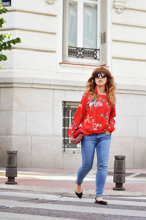 Floral shirt: Shein / Jeans: Levis / Bag: Zara / Earrings: Bershka / Sandals: Unit