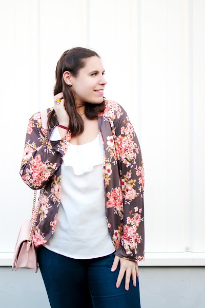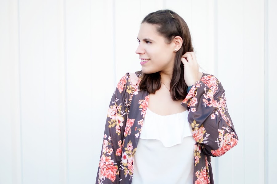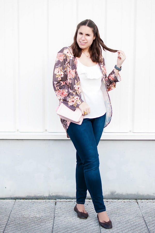 Comienzo mayo con un look perfecto para esta época del año, donde las claras protagonitas son... ¡Las flores! Nada mejor que este outfit para homenajearlas, ya que este es su mes por excelencia. Os las muestro en forma de kimono. Bueno, de un precioso kimono... ¡Porque su estampado me parece maravilloso! Creo que es muy combinable y será mi aliado en las noches frescas de verano. ¡Seguro que le doy mucho uso! Es de una de mis webs favoritas, Zaful, y esta vez lo combiné con jeans, una blusa en blanco y algún que otro accesorio en rosa.